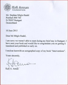 Bei Großveranstaltungen ist auch eine Kontakt-Vermittlung zu Kofi Annan möglich.