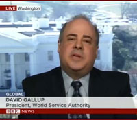 Amtierender Direktor der World Service Agency (WSA) ist der Jurist David Gallup(Click Link zu 5 minInterview mit BBC World News), der hier rechts bei einer Konferenz in Washington DC zusammen mit Stephan Mögle- Stadel zu sehen ist. |