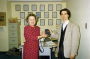 Direktorin der WSA, überreicht Stephan Mögle-Stadel 1993 einen Weltbürgerpass h.c. für dessen kosmo- politisch begründete Kriegsdienstverweigerung ![]() |