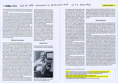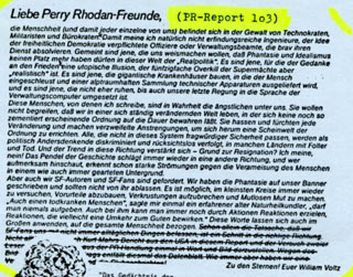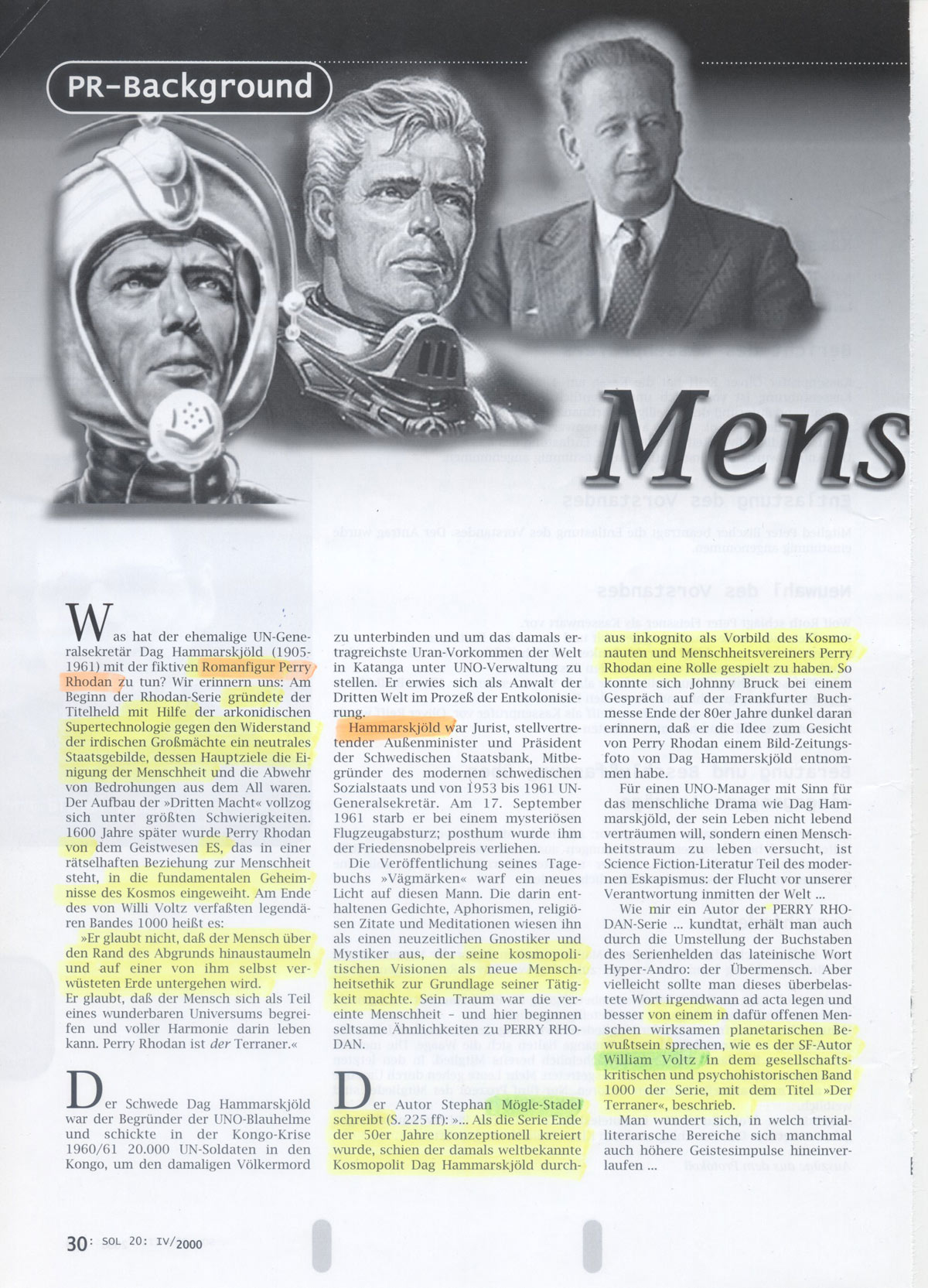 Ein psychologischer Nachtrag zu der Annonce in 2874: Im Juni 2016 wurde, durch Vermittlung des obersten Verlagsleiters Walter A. Fuchs, zu einem Sonderpreis die vordere Umschlags-innenseite (in der Druckerei-Sprache U2 genannt) gebucht und reserviert. Die Anzeige (s.o.) war als Gratulations-Anzeige zu 55. Jahre PR (September 1961) gestaltet. Zugleich erinnerte sie und das dort annoncierte Buch an das Attentat auf Dag Hammarskjöld. Das zweite Buch befasste sich mit dem Thema Globalisierung. Aus der wissenschaftlichen Leseverhaltensforschung ist bekannt, dass die U2-Seite von ca. 95 % der LeserInnen wahrgenommen wird. Das entsprechende Heft Nr. 2874 „Thez“ erschien am 16. September. Leider wurde auf der U2-Seite die Leser nicht von obiger Anzeige begrüsst. Obwohl es schriftlich bestätigter Vertragsbestandteil war, dass die Annonce auf U2 erscheint, befand sich dort stattdessen nun eine Anzeige der Heftserie Maddrax. Die Weltbürger-Annonce wurde verrückt auf die zweit-letzte Seite 83, drucktechnisch U3 genannt. Aus der Leseverhaltenforschung ist bekannt, dass U3 bestenfalls von etwa 40 % der Leser wahrgenommen wird, zumal bei PR dort in der Regel eher altbekannte Eigenwerbung steht bzw. auf Seite 82 eine permanente PR-Abo-Werbung. Nichts, was langjährige PR-Leser noch aufsuchen. Wir wurden nach Anzeigen-Erscheinen von einem Insider, der die PR-Redaktion gut kennt, schon darauf hingewiesen, dass die PR-Redaktion zwar gerne über Kosmopolitismus Weltfrieden und Weltbürgertum philosophiert, aber eher die Konfrontation mit der Realität scheut und statt kosmo-politisch eher unpolitisch ist. William Voltz taugt zwar noch als historisches Aushängeschild, aber soweit wie er würde sich dort heute keiner mehr weltbürgerlich engagieren (wollen). Stimmt, wir haben keinen einzigen PR-Autoren oder Pabel-Moewig-Mitarbeiter als Fördermitglied unseres gemeinnützigen Weltbürgervereines registriert. Deren Chefredakteur Klaus N. Frick schreibt zwar auf U2 (!) im Vorwort des PR-Sonderbandes „Der Methankrieg“ (09-2016): „Die drei Romane ... erzählen eine spannende SF-Geschichte um Krieg und Frieden, um kosmisches Bewusstsein und weitreichende Konsequenzen.“ Schon mit dem Bewusstsein der Vertragstreue scheint es aber dort in der Realität etwas problematisch zu sein? Nachdem die obige Annonce von U2 vorne auf U3 in die hintere Besenkammer abgeschoben wurde, schrieb Stephan Mögle-Stadel eine e-mail (link) an den Anzeigenleiter. Dieser eigentlich sehr freundliche Mensch fragte sodann bei der PR-Redaktion, also u.a. den Herren Bollhöfner (Marketing) und Frick (Chef), nach, wie es zu dieser Verschiebung der Annonce kam? Die Antwort lautete, es sei ein Versehen der „Technik /Druckerei“ gewesen, dass die Anzeige nach Hinten gerutscht wäre. Aber leider wolle man als Kompensation keine Wiederholung der Annonce auf U2 anbieten, sondern stattdessen 100 Euro Preisnachlass. Die gängige Rechtssprechung sieht in solchen Fällen (Urteile von Oberlandesgerichten etc.) entweder eine korrekte Wiederholung der Annonce vor, oder eine weitgehende Erstattung des Anzeigenpreises. Da mit der Annonce für den kleinen, gemeinnützigen Weltbürgerverein auch die Kosten für eine professionelle Herstellung der Annonce, die Überarbeitung der Hammarskjöld-Buch-pdf-Datei im Bereich eines Perry Rhodan Kapitels und die Installation einer speziellen Webunterseite für die PR-Leser der Annonce durch eine EDV-Web-Firma verbunden war, wären die juristischen Chancen gut, entweder eine Wiederholung oder einen Schadensersatz deutlich über die angebotenen 100 Euro zu erwirken. Zumal eine solche gerichtliche Auseinandersetzung keine gute PR für die PR-Serie wäre. Im Verein sind einige Journalisten Mitglied und Stephan Mögle-Stadel, der Autor der annoncierten Bücher, schrieb u.a. auch schon für die Buchbranchenfachpresse...* Denn von den befragten Druckereifachleuten und Psychologen glaubte keiner so recht der Ausrede, dass die Satz-Technik hier einen „Platzierungsfehler“ gemacht hätte. Als die Annonce technisch via dropbox an die Herstellungsabteilung des Pabel-Moewig-Verlages übermittelt wurde, sagte man dort auf eine telefonische Nachfrage von Herr Mögle-Stadel in Anwesenheit von Zeugen, dass die Annonce technisch einwandfrei sei und schon auf U2 eingesetzt wäre. Cui bono? Was also war wirklich passiert? Möglicherweise handelt es sich bei dem Platzierungs-Fehler um das, was man in der Psychoanalyse eine freundsche Fehlleistung (ähnlich einem freundschen Versprecher) nennt. Der Inhalt der Anzeige war zwar nicht zu beanstanden, aber psychologisch nicht willkommen. Durch den “Platzierungs-Fehler” in die hintere "Besenkammer" konnte man -unbewusst?- zumindest die Leser-Aufmerksamkeit für diese redaktionell ungeliebte Annonce reduzieren. Ein nicht untypisches Abwehrverhalten des humanoiden Unter-Bewusstseins. Soweit die Arbeits-hypothese. Abgesehen von der leider erst nachträglich bei uns eingegangenen Insider-info, dass die PR-Redaktion eine solchen Annonce, die indirekt Dag Hammarskjöld als Vorbild der Serie aufzeigt und zudem einen „Einbruch des Realitätsprinzips“ (Zitat Psychologe) in die schöne Science Fiction Fantasie Welt der PR-Redaktion darstellt, zwiespältig empfunden haben dürfte, spricht noch ein einfacher, psycho-logischer Gedanken-gang für die Arbeits-hypothese der Abwehr: Das Erbe von William Voltz ist doppelbödig. Er und Hans Kneifel waren die einzigen PR-Autoren, die nicht angesichts der drohenden Selbstzerstörung unserer Spezies nur kosmonautisch von der Einheit der Menschheit träumten und PR-Stories darüber schrieben, sondern die sich auch wahrhaftig kosmo-politisch engagierten. Gerade William wollte die PR-Leserschaft zu kosmo-politischen Handeln bewegen. Inge Mahn-Voltz schrieb hierzu im Dezember 2014 auf der Website www.williamvoltz.de (link): „Willi scheute nicht davor zurück, auch kontroverse Themen zu veröffentlichen. Sein Gedanke dabei war, die Leser zu m