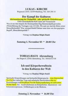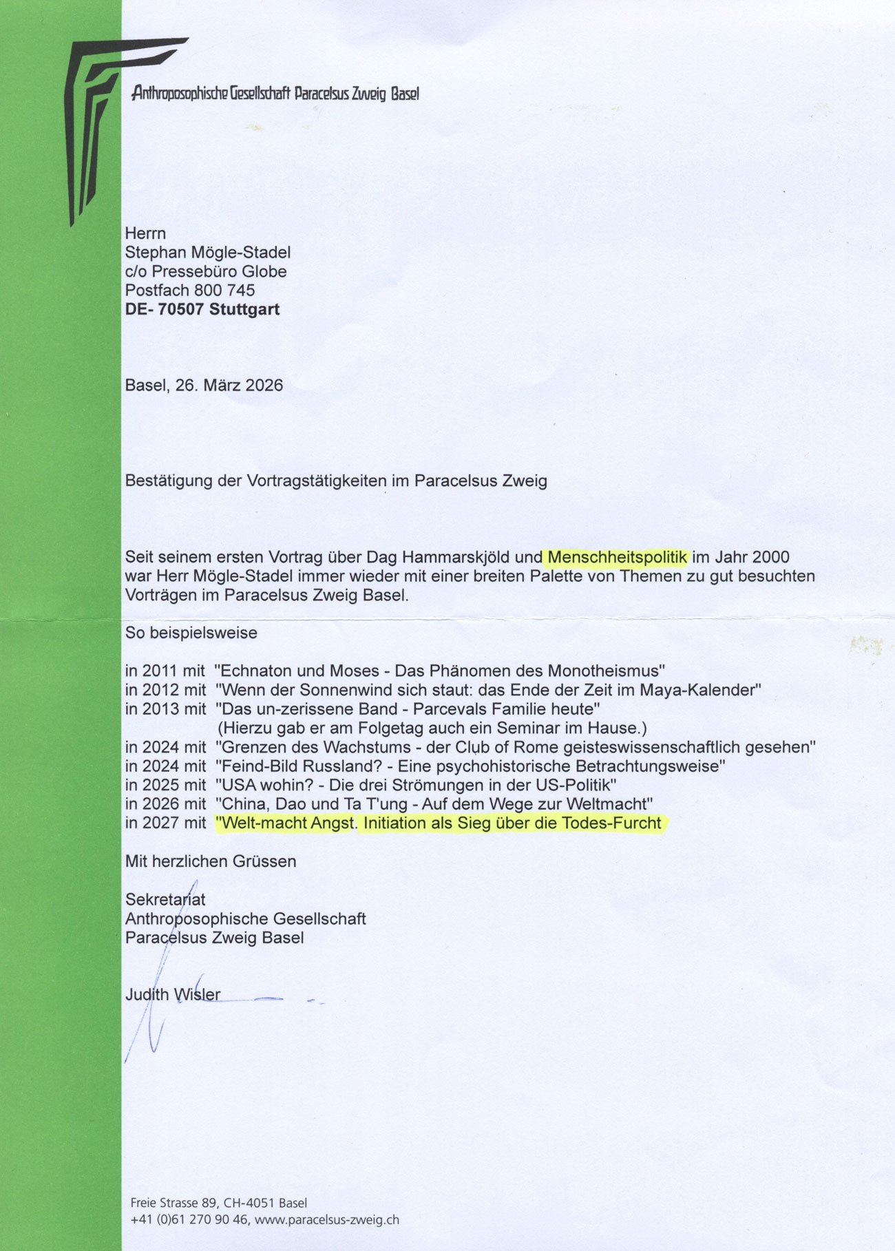 ![]() Auflistung einiger Vorträge im Paracelsus Zweig / Scala Basel. Tafelanschrieb-Foto Bühne China-Vortrag 2026 |