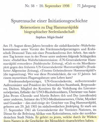 ![]() Titel-Essay Goetheanum "Spuren- suche einer Initiations-Geschichte" Reisenotizen des Schriftstellers S. Mögle-Stadel zu Dag Hammar- skjölds biografischer Seelen- Landschaft (Link) |