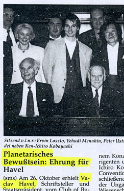![]() Links nach Rechts: Prof. Ervin Laszlo, Yehudi Menuhin, Sir Peter Ustinov, da- hinter Stephan Mögle-Stadel und Icho Kuyamizu. Foto zum Vergrößern bitte anlicken! |