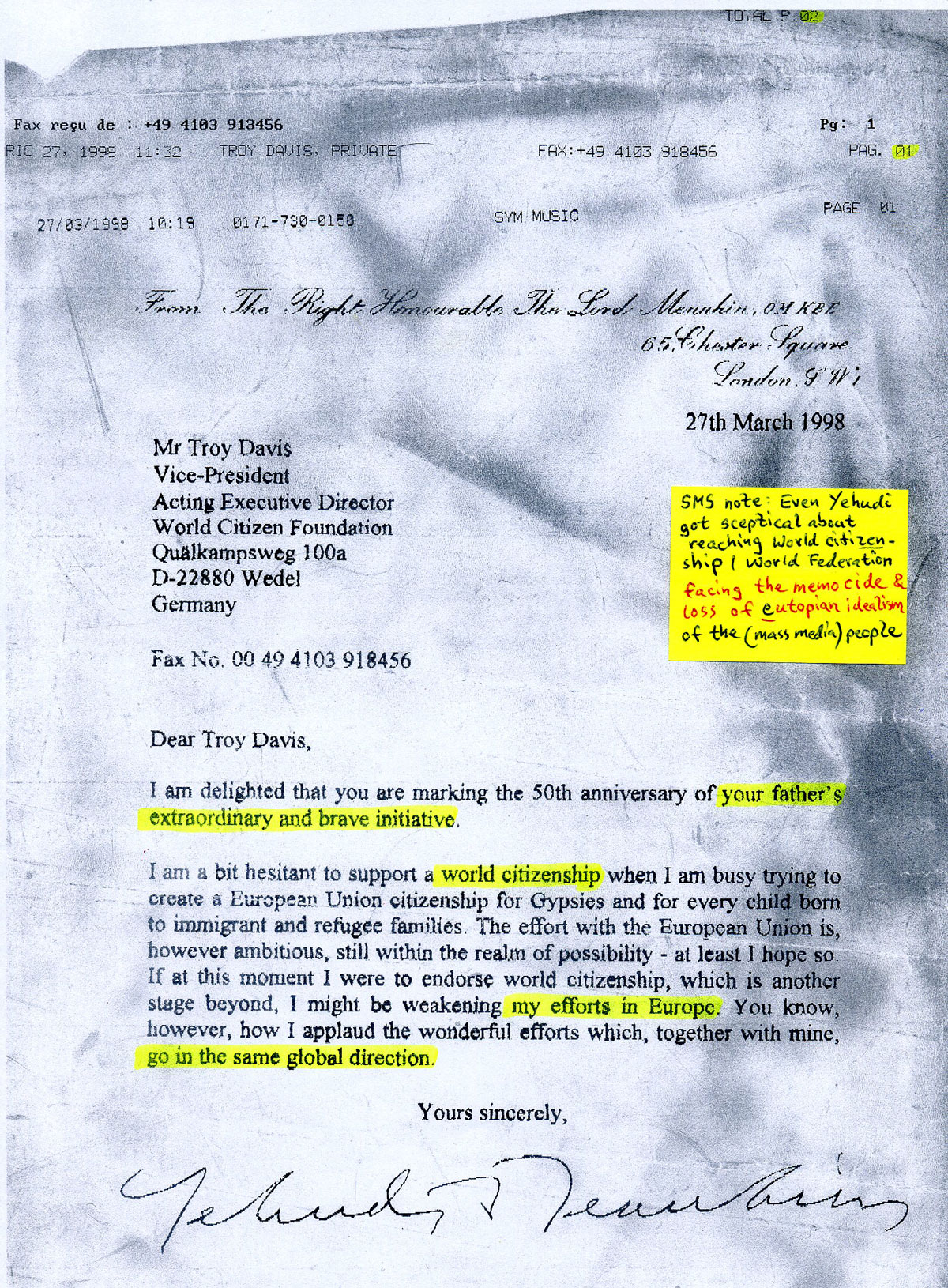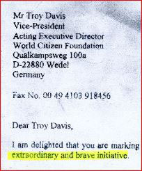 Der 1963 geborene Troy Davis, der zur Zeit in der Nähe von Hamburg, sowie in Straßburg und New York lebt, versucht die Weltbürgerbewegung auch in Deutschland wieder bekannt zu machen. Im Gegensatz zu seinem Vater Garry Davis, möchte Troy Davis auf spektakuläre Aktionen verzichten. "Wir müssen eine Debatte in Parlamenten, Schulen und Universitäten anregen. Unser nächstes Ziel ist es, eine verfassungsgebende Versammlung für eine Weltverfassung auf der Grundlage der allgemeinen Erklärung der Menschenrecht zu bilden".