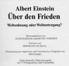 Albert Einstein -Zitate, entnommen dem Buch: Albert Einstein „FRIEDEN – Weltordnung oder Weltuntergang“. Herausgeber: Otto Nathan und Heinz Norden, Peter Lang-Verlag:
