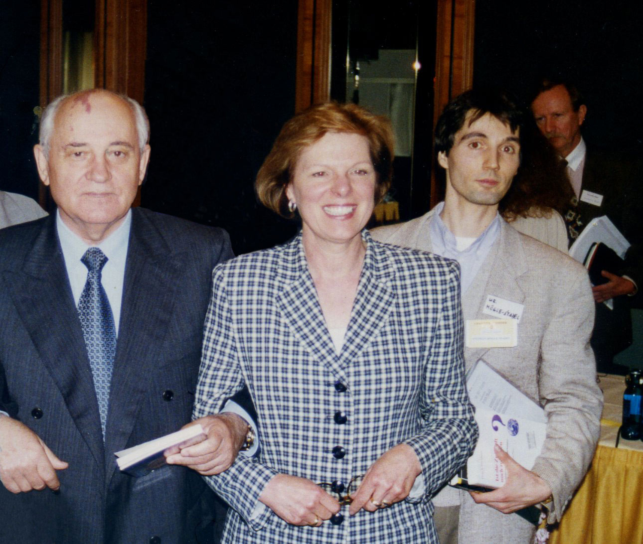 | Late Sir Peter Ustinov, President of the World Federalist Movement, with Gorbatschow at press conference in Frankfurt: