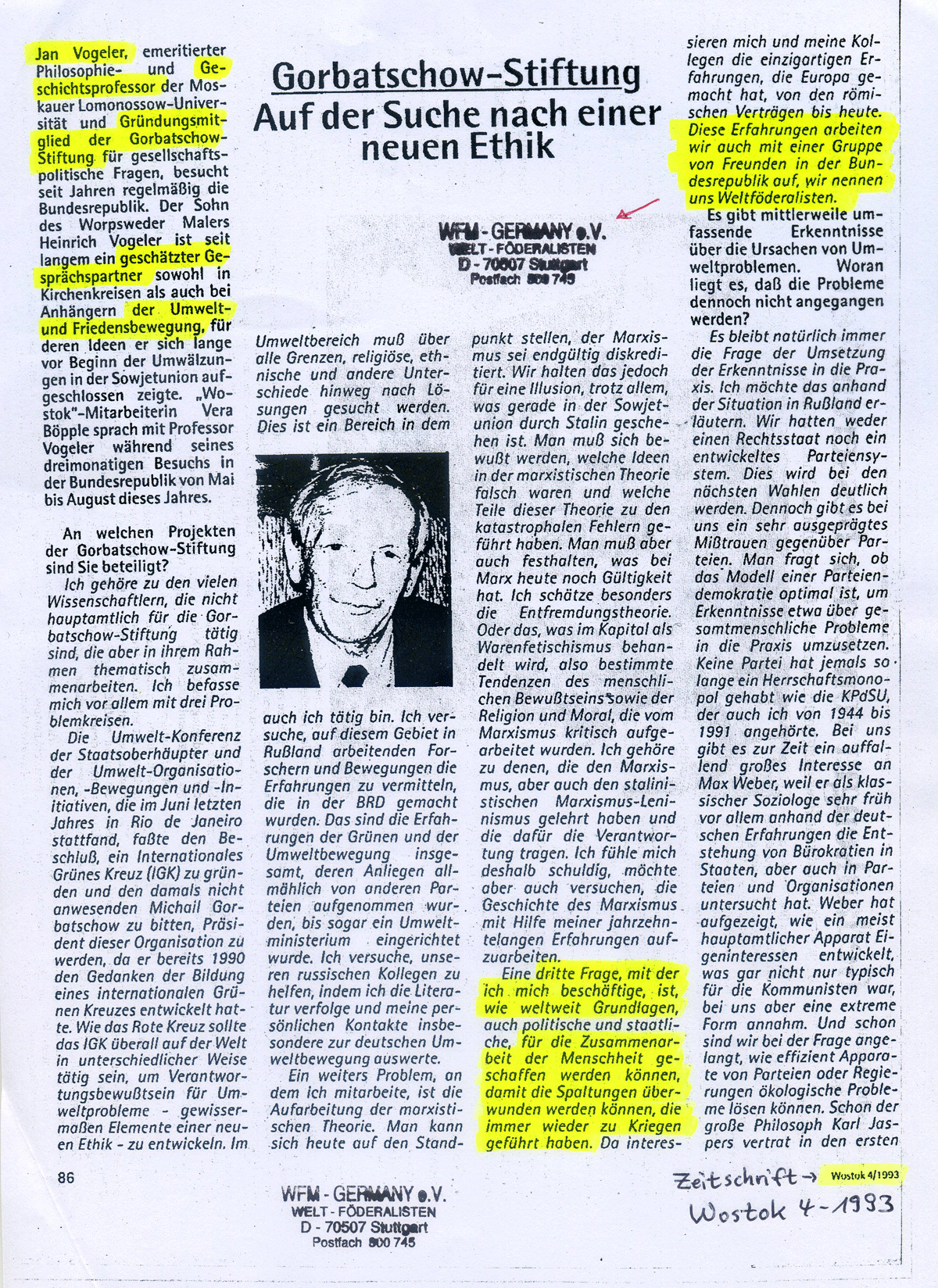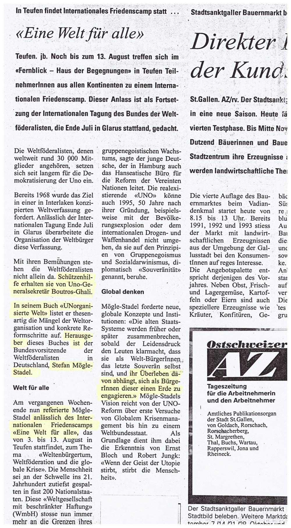 Weltbürger 1993Neue Ökologische