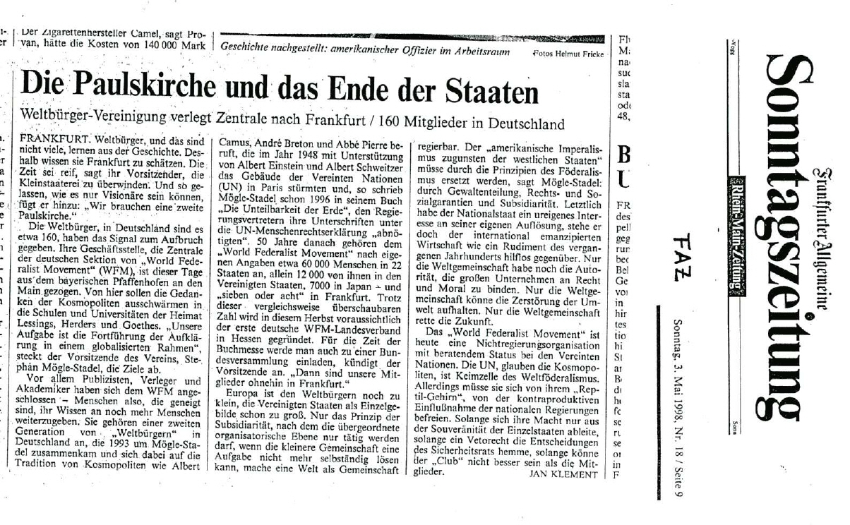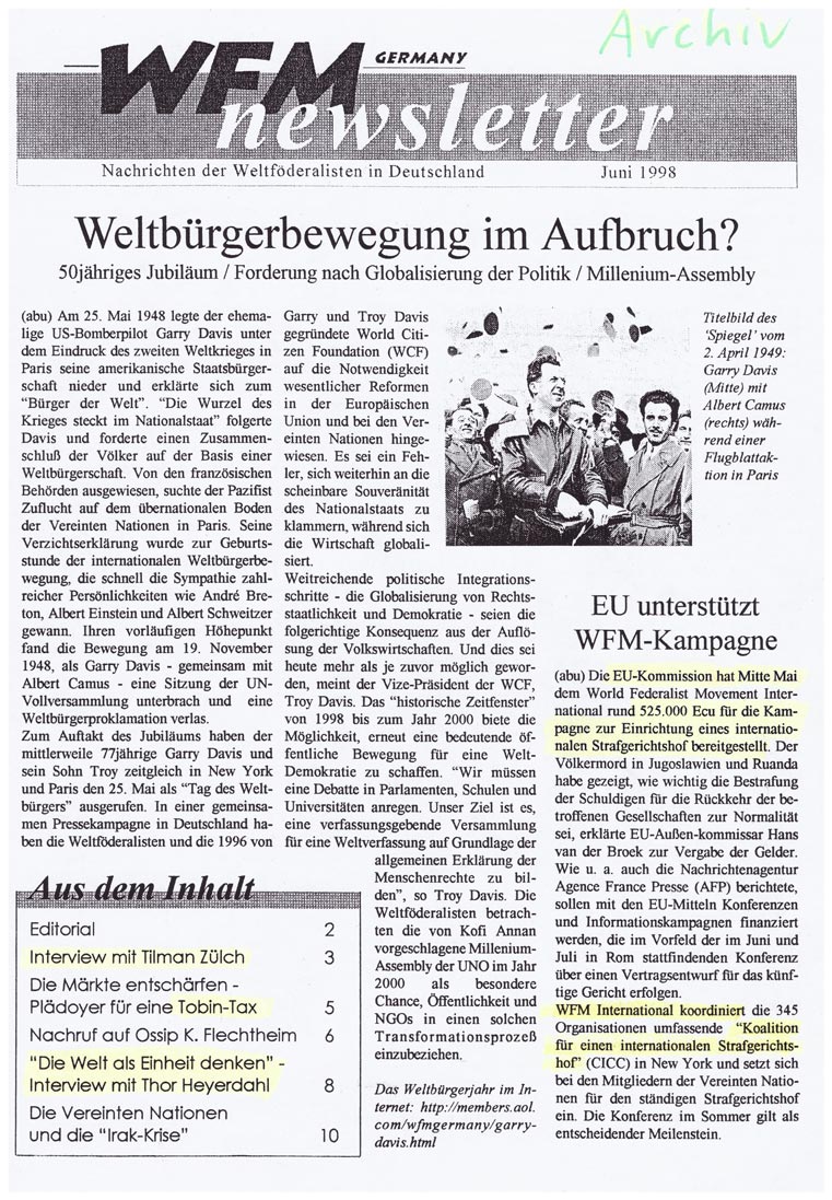erschienen in Newsletter Europaunion und WFM-News Juni 1998 |  |
