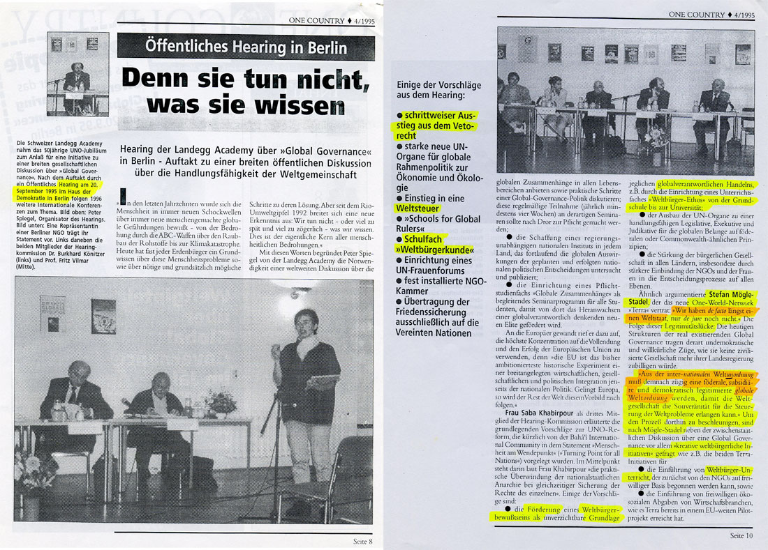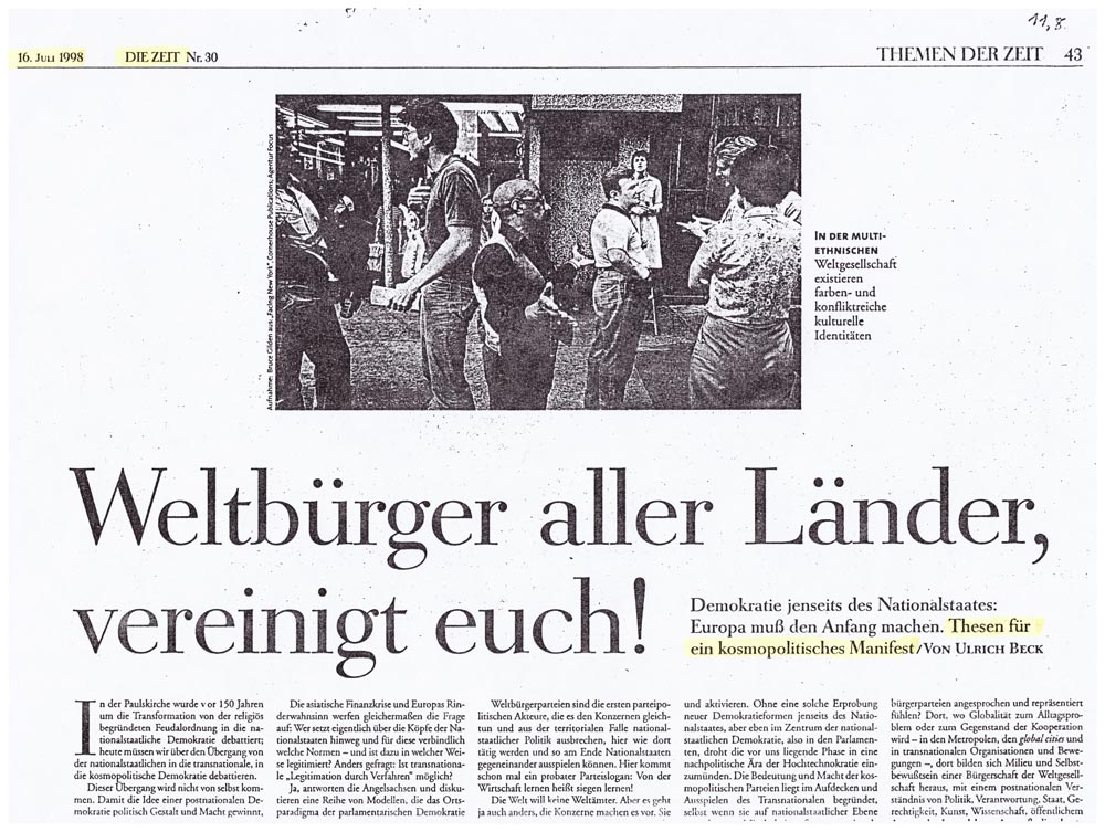 der ZEIT zur Gründung einer Weltbürger-Partei