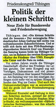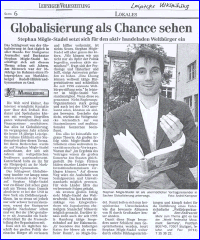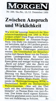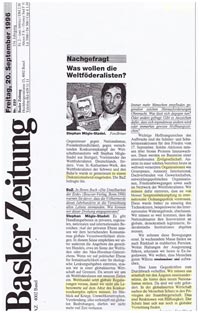 "Unterwegs für eine bessere Welt"erschienen im Züricher Tages-Anzeiger, 26. Mai 1999