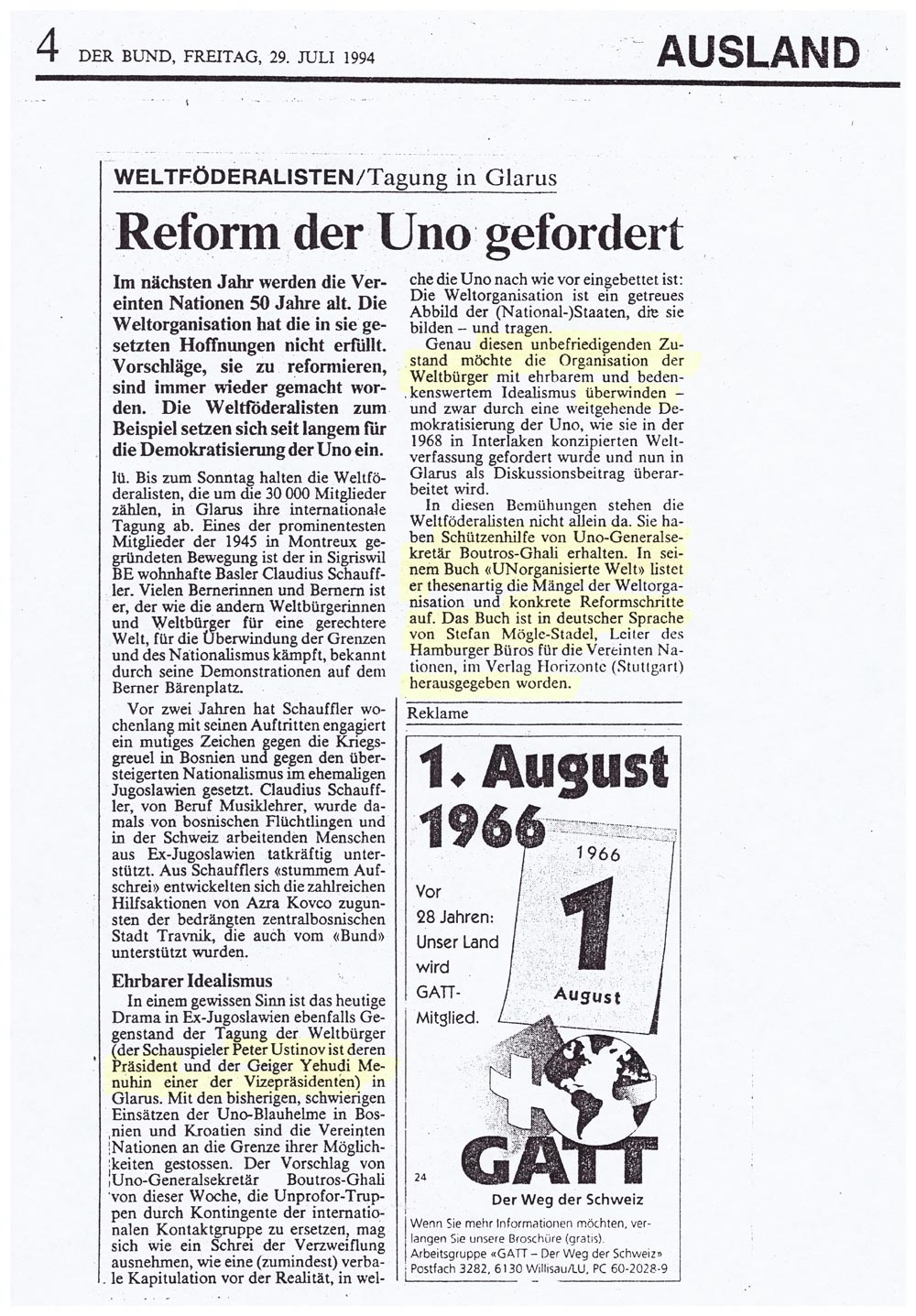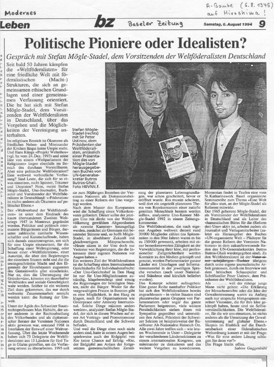 erschienen am 6.8.1994 in Baseler Zeitung"Politische Pioniere oder Idealisten"