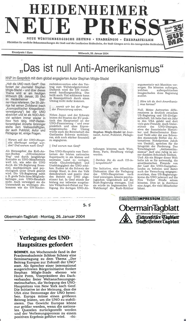 Weltbürgertreffen, die UNO in New York oder die
