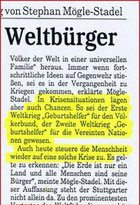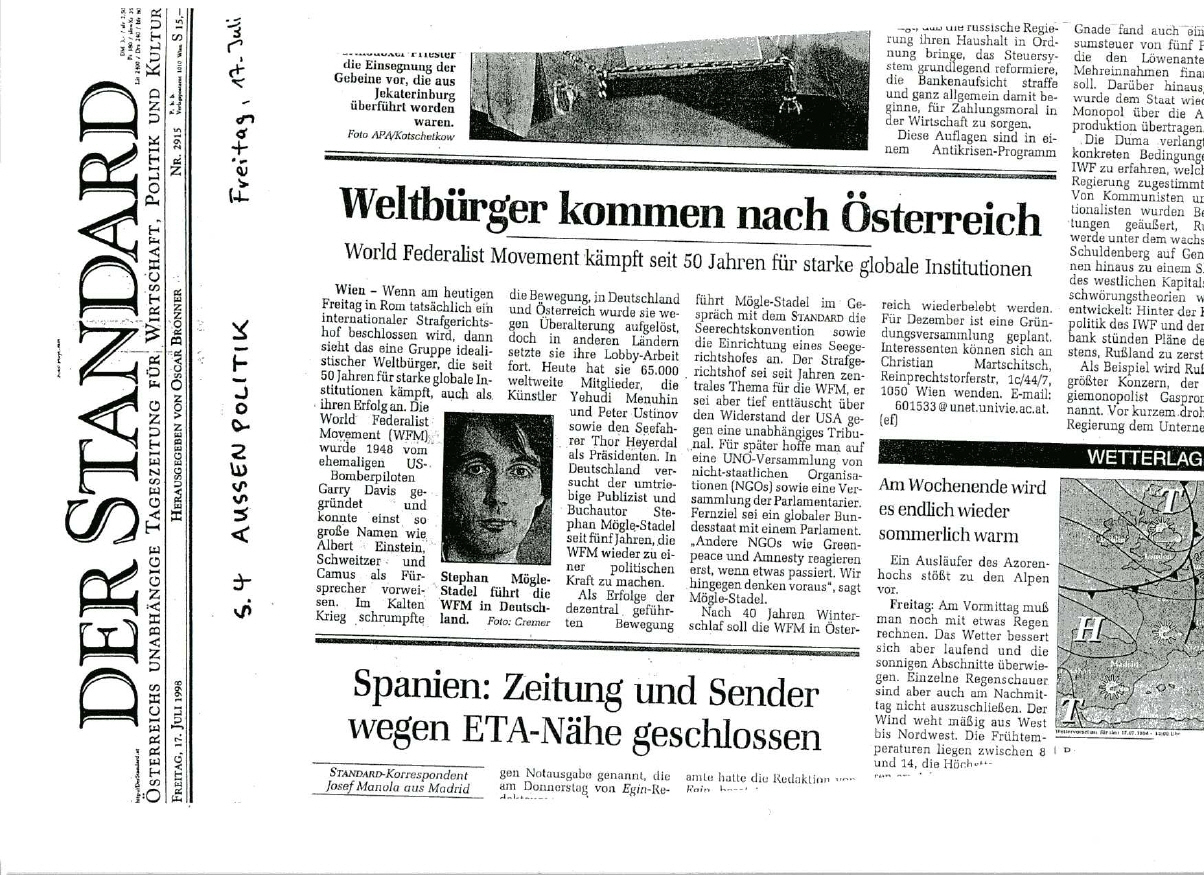 "Weltbürger kommen nach Österreich"erschienen im Standard am 17. Juli 1998