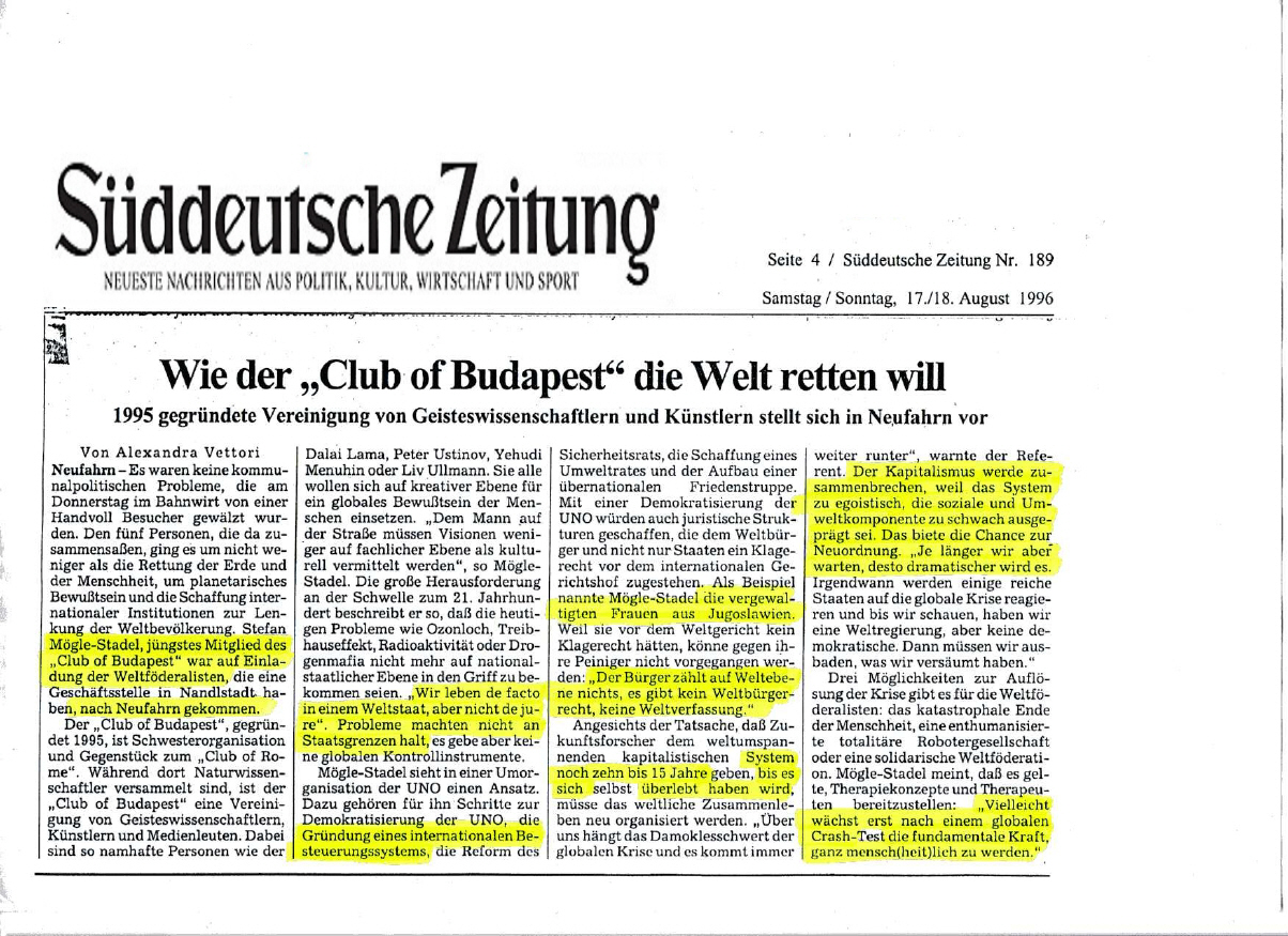 Club of Rome". Der Autor prognostizierte 1996 den Finanz-Crash von 2008 & WFM
