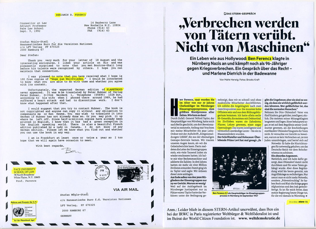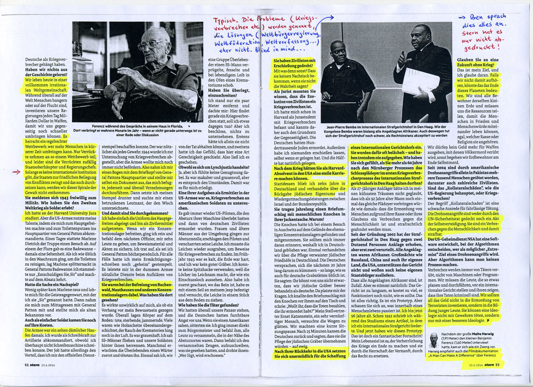 Stern-Interview mit dem Juristen, Kosmopoliten und Weltföderalisten Benjamin Ferencz