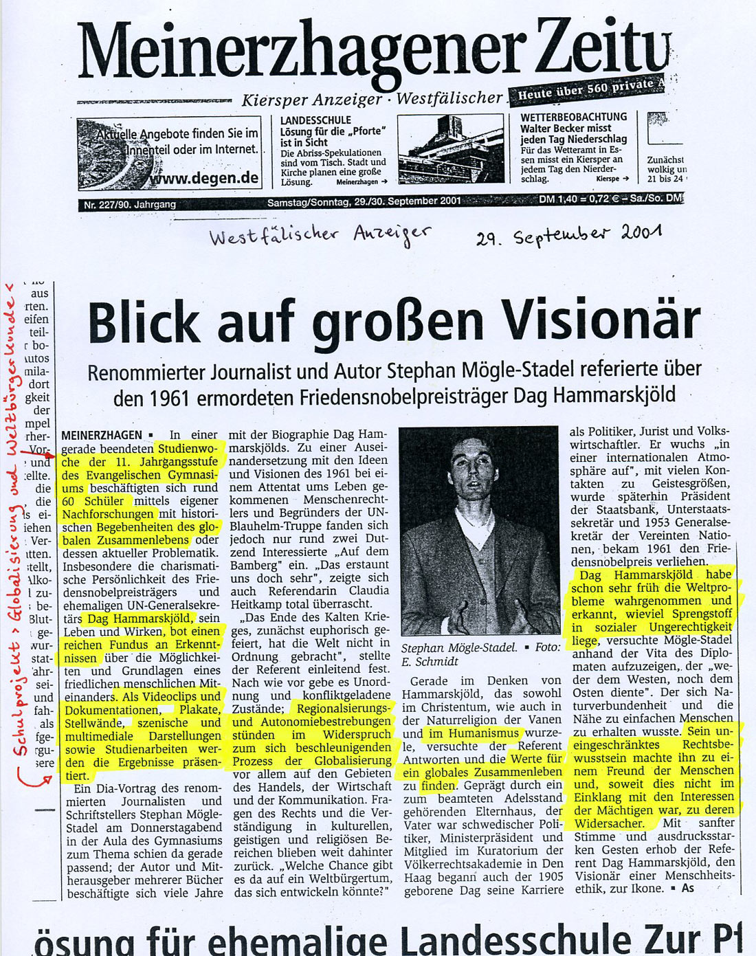 Links: Bericht von Projektwoche Weltbürgerkunde