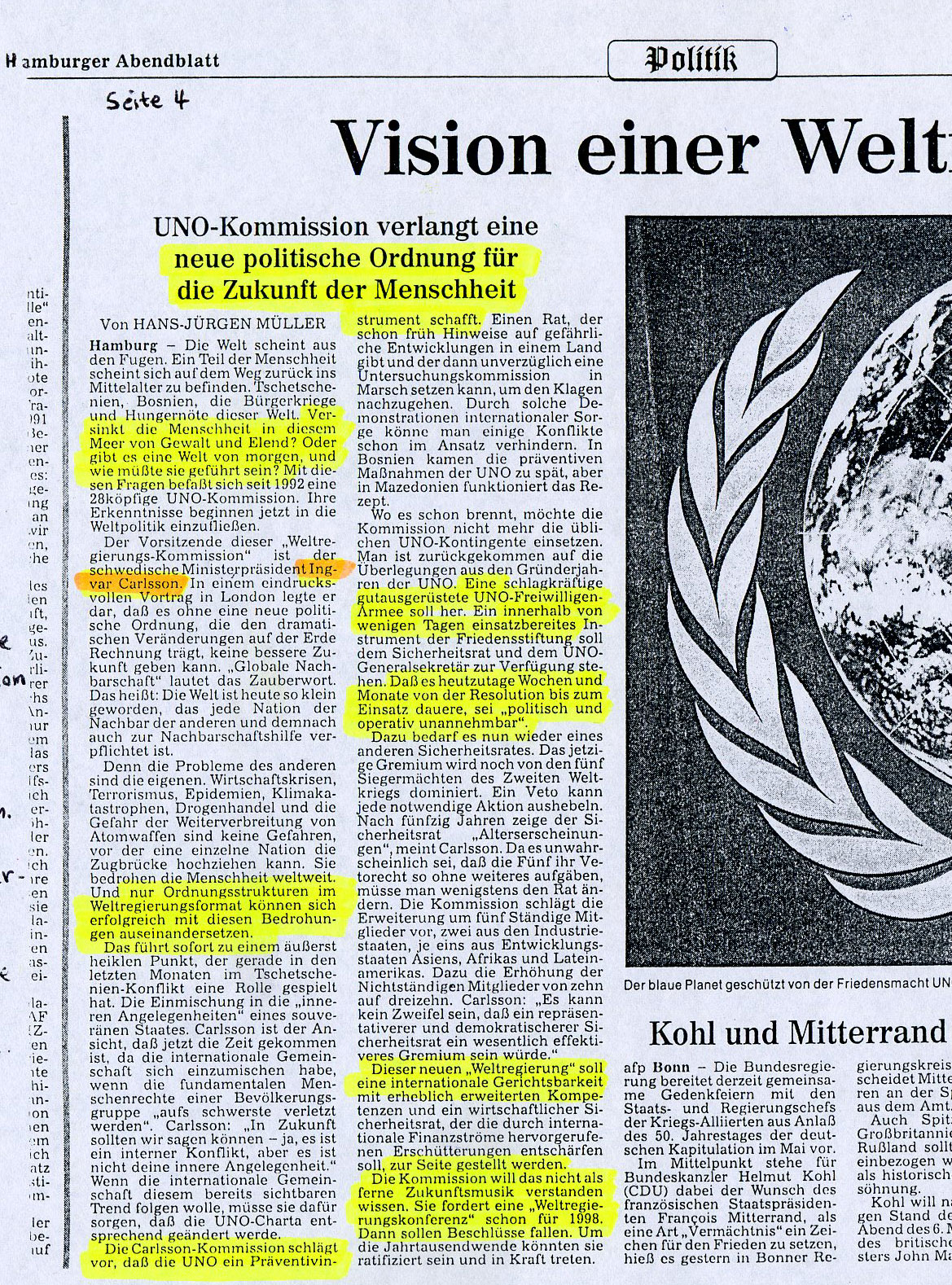 --> Die Frankfurter Rundschau hat das Thema Weltbürgerregierung & Global Governance