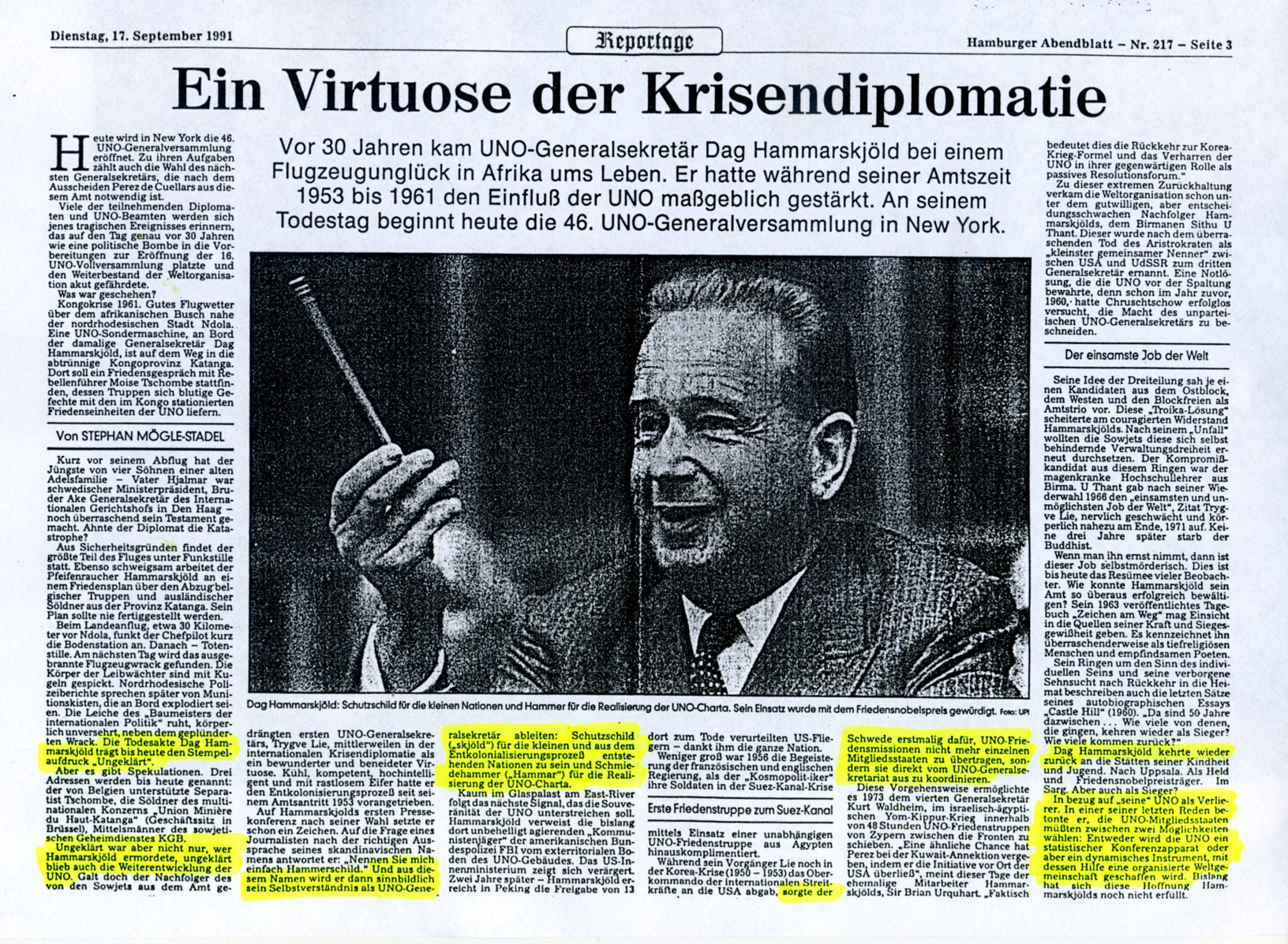 30. Todestag von Hammarskjöld