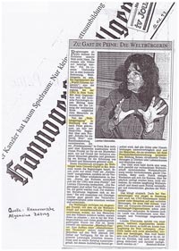 "Die Weltbürgerin" aus New York zu Gast in Hannover und Hamburg. Repräsentantin der Weltbürger (heute World Citizen Foundation) bei Tagung in Deutschland.