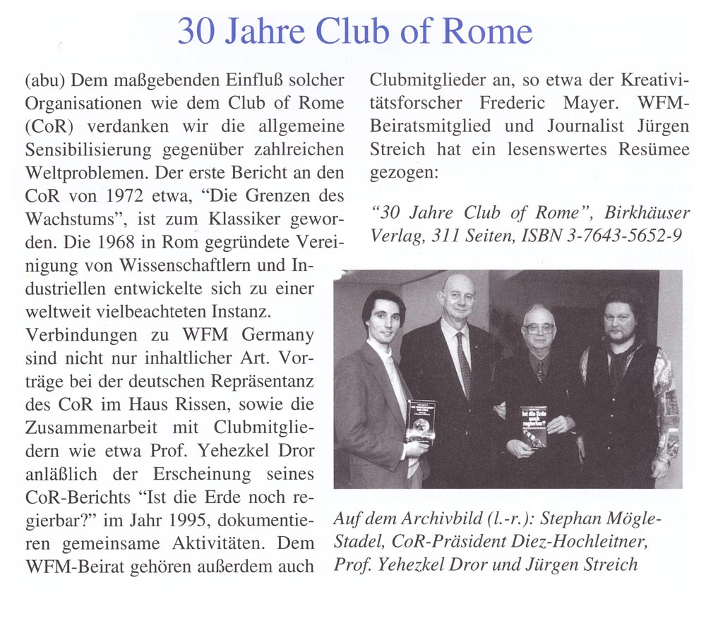 Zusammenarbeit mit dem Club of Rome (oben)