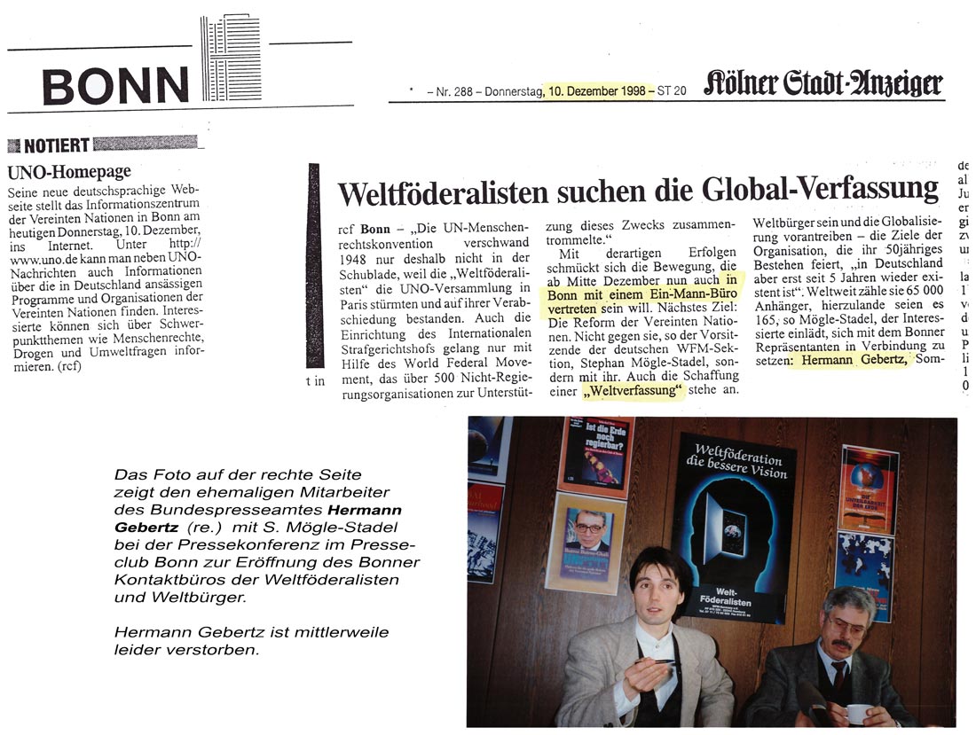 Weltföderalisten eröffnen Büro in Bonn