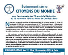 ![]() Événement CdM 70 CitoyenS DU Monde pour l’anniversaire des 70 ans de la Déclaration du 19 novembre 1948 au Palais de Chaillot à Paris (view Link) |