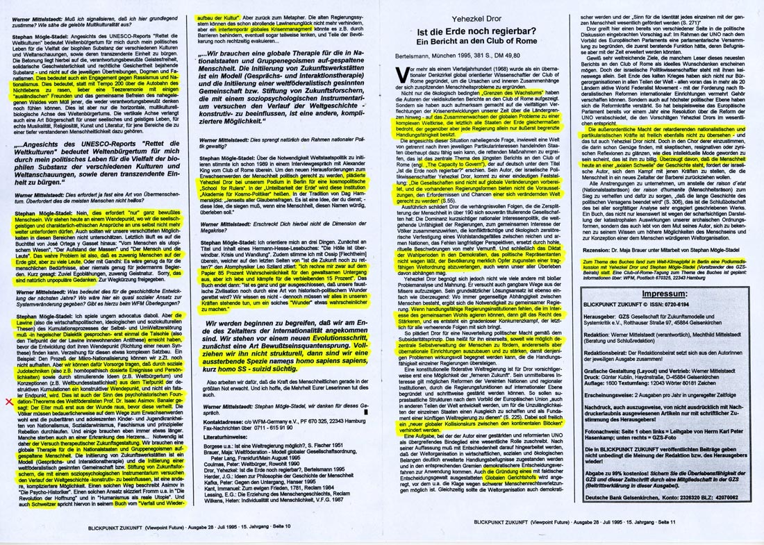 Interview Zeitschrift Blickpunkt Zukunft mit Stephan Mögle-Stadel über Globalisierungs-Krise, Zukunftsforschung und Global Governance: