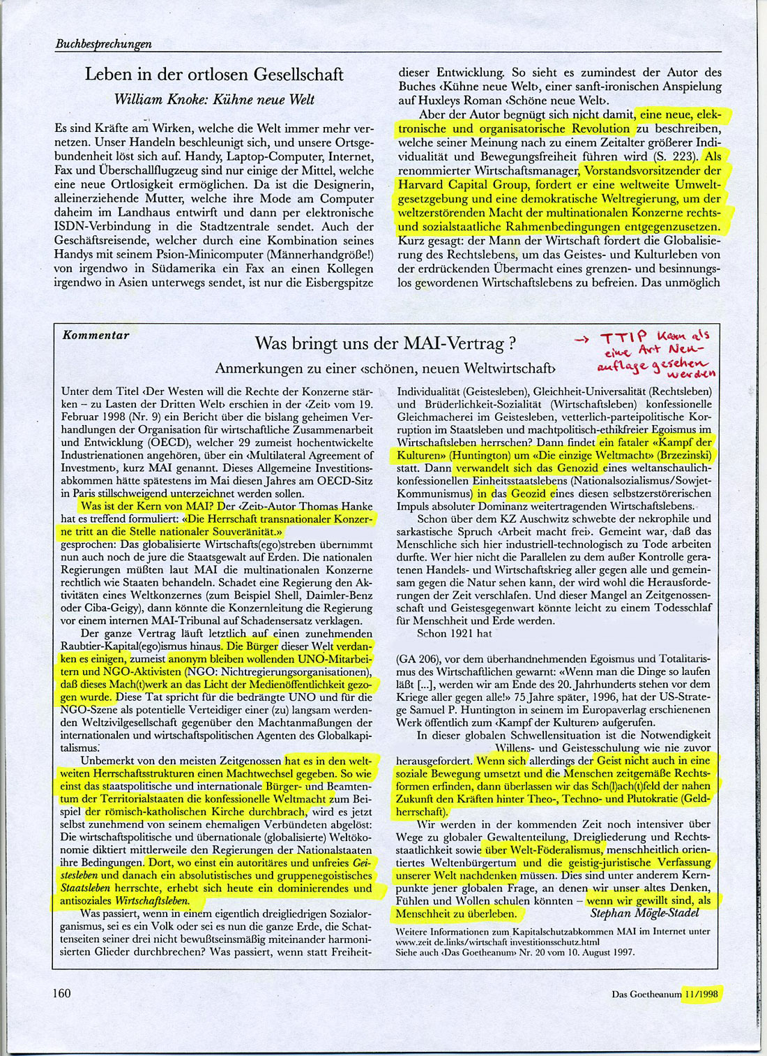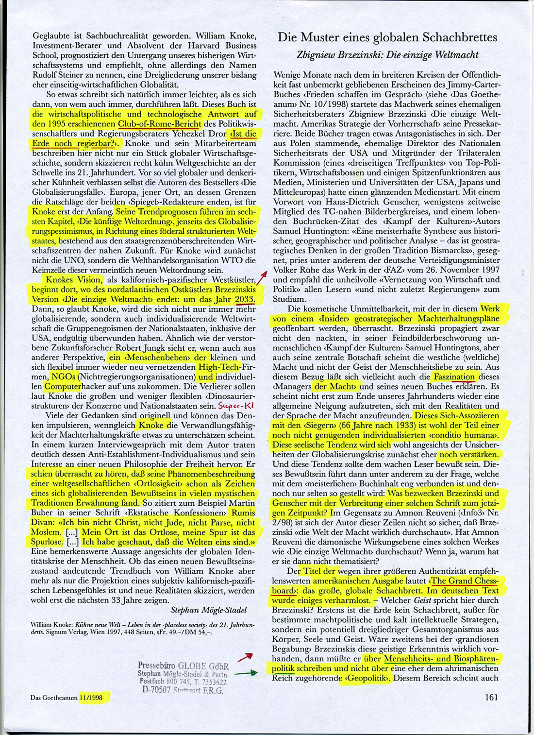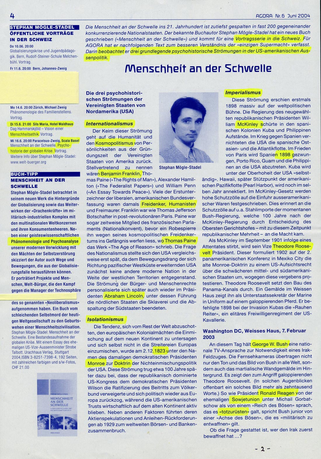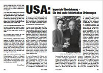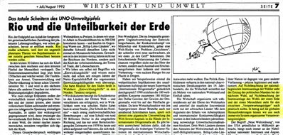 Essay zum Erdgipfel in Rio UN Conference on Environment & Development erschienen in der NLZ (Schweiz) im August 1992 ![]() Oben: Ausführlicher, analytischer Aufsatz zur UN-Konferenz über Umwelt und Entwicklung 1992 in Rio de Janeiro. Autor Stephan Mögle-Stadel nahm als NGO-Delegierter an den Vorbreitungs-Konferenzen in Genf und New York City teil. Zugleich war er Mitiinitiator und Referent beim Gegen-Gipfel der Zivilgesellschaft in Freiburg (Breisgau). <-- links: Der Buchauszug über die drei psychohistorischen Strömungen in der US-Außenpolitik ist dem Buch "Menschheit an der Schwelle" , ab S. 123, entnommen. Die Farb-Graphik zur Psychoanalyse / Sozialhistorie ist dem Buch "Dag Hammarskjöld Vermächtnis" (Seite 157) entnommen. |