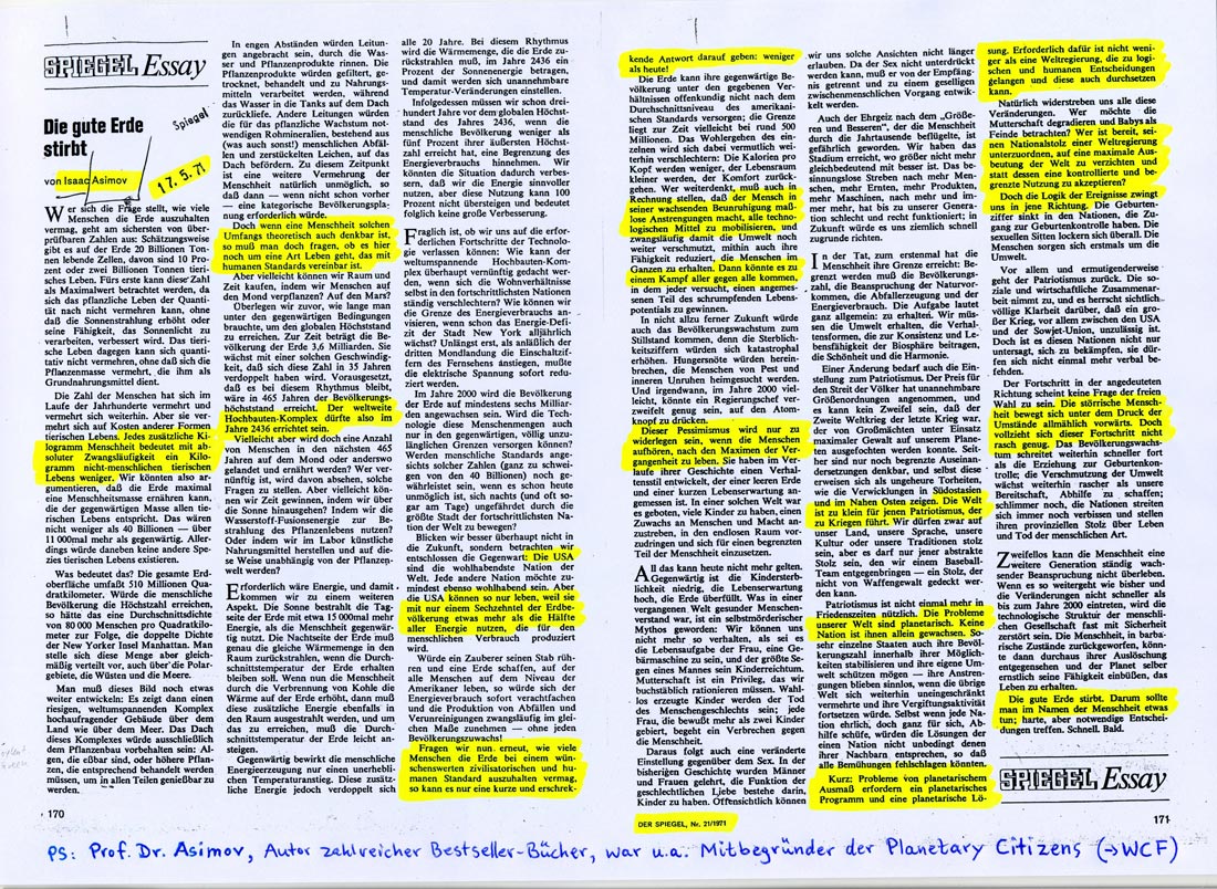 ![]() oben: Link zu einer Gedächtnis-Webseite von Prof. Dr. Isaac Asimov, Urheber der Asimovschen IT-Regeln für KI-Roboter und Mitbegründer der Planetary Citizens. |