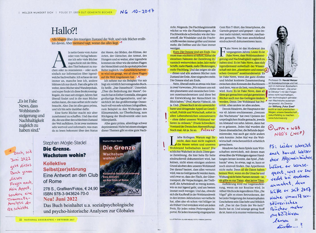 ![]() Welzer beklagt 2017, daß alle Buchautoren nur über den Zustand der Welt klagen, aber nicht sagen, woran es wirklich scheitert. Seit 2022 gibt es nun ein Buch, welches die Entstehungsgeschichte der Globalen Krise analysiert. Zum Buch |