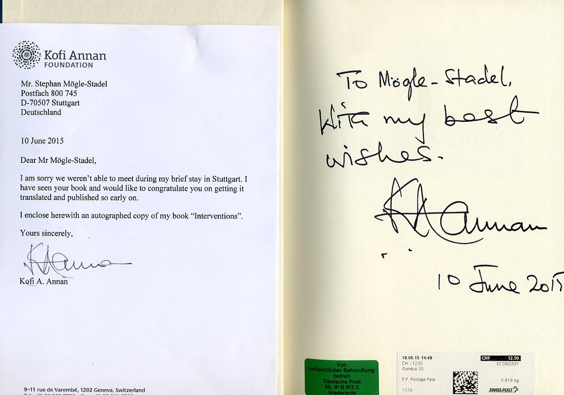 Bei Großveranstaltungen ist auch eine Kontakt-Vermittlung zu Kofi Annan möglich.
