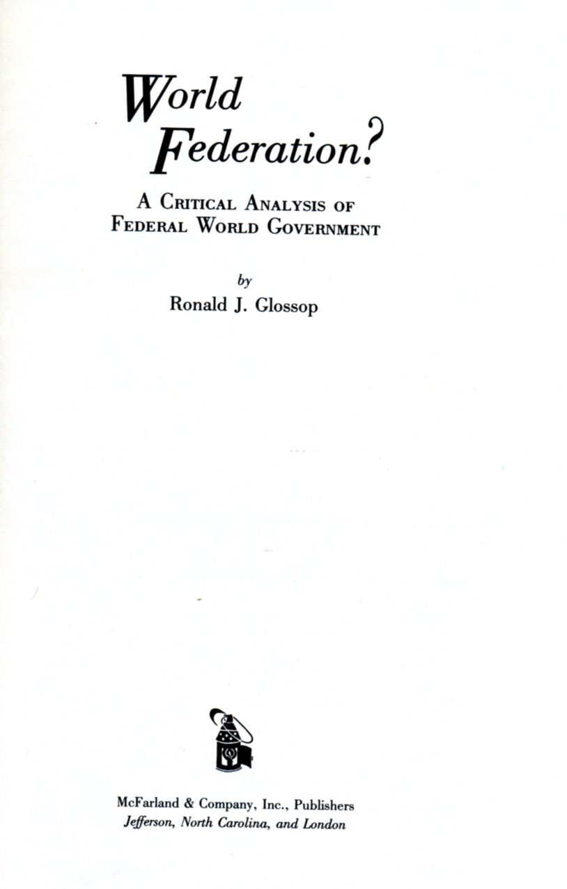 | World Federation, a study by Prof. Dr. Ronald J. Glossop | |||||||
