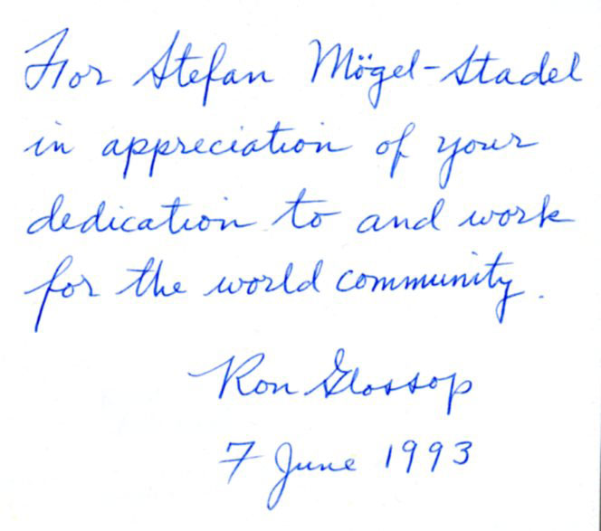 Ronald J. Glossop is Professor Emeritus of Philosophy and Peace Studies at Southern Illinois University at Edwardsville and author of World Federation? (Jefferson NC: McFarland, 1993, Esperanto translation Monda Federacio? by Johano Rapley published by Glossop in Florissant MO in 2001) and Confronting War (Jefferson NC: McFarland, 1983, 4th ed. 2001). Glossop is active in several non-governmental organizations such as “Citizens for Global Solutions” (formerly “World Federalist Association”) and Esperanto organizations at the local, national, and global level.