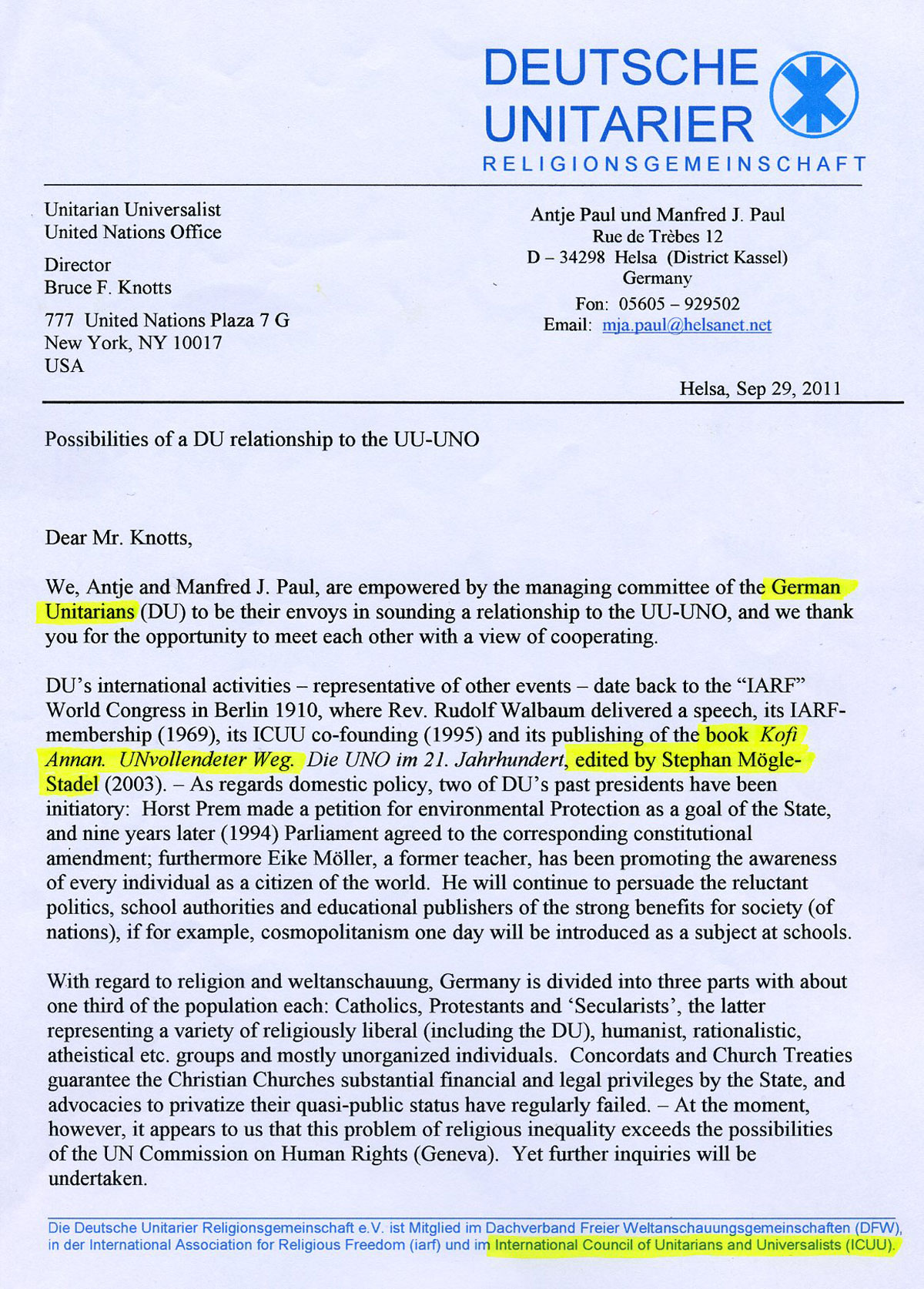 ![]() Meeting with Bruce F. Knotts, head of the UU-UNO-Office in New York City during World Citizens Study Tour. |