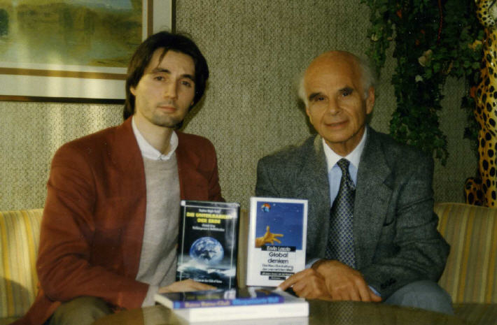 Ervin Laszlo mit Stephan Moegle-Stadel bei dessen Aufnahme als Creativ Member des Club of Budapest (8/13)