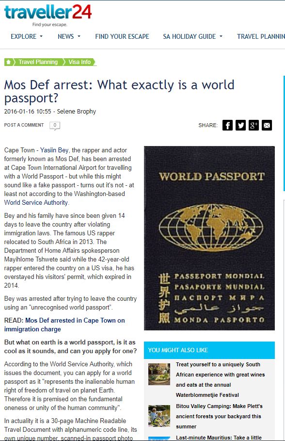 | Beispiel eines WSA-Weltbürgerpasses rechts Deutschland gehört leider zu jenen Staaten, die den maschinenlesbaren Weltbürger-Pass dezidiert nicht anerkennen. Dies ist angesichts seiner natio- nalen Geschichte besonders bedauerlich. Bitte benutzen Sie Ihren Weltbürgerpass in D. besser nicht bei offiziellen Stellen. Auf der WSA-Website (Pass rechts Oben anklicken) finden Sie viele Konsulats-, Botschafts- und Grenz- kontroll-Stempel von vielen Ländern dieser Welt, welche den WB-Pass „von Fall zu Fall“ akzeptieren. Es wäre natürlich schön, wenn Sie nicht nur einen WB-Pass als Sammlerstück erwerben wollten, sondern auch das Weltbürgertum aktiv oder zumindest via einer steuerlich absetzbaren Spende unterstützen würden. Dies würde helfen, den ansonsten etwas schi- zoiden Spalt zwischen Idee-alismus und gelebten Kosmopolitismus zu schließen. Danke. |
