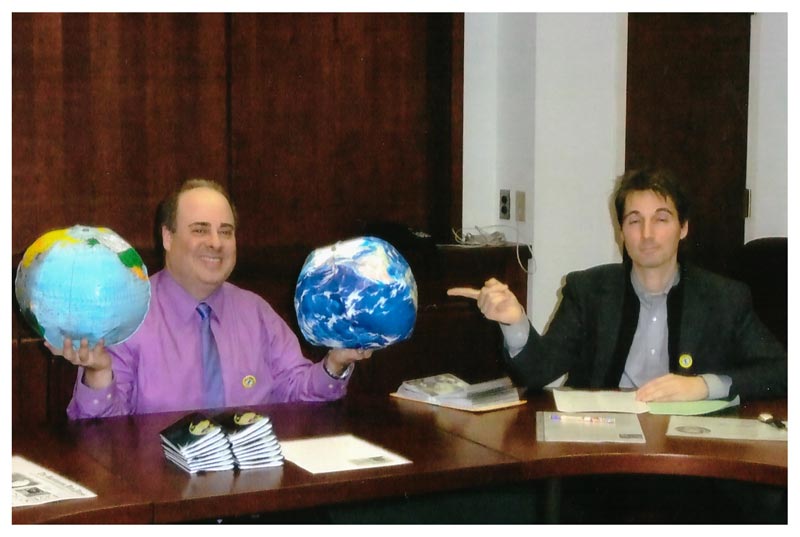 Amtierender Direktor der World Service Agency (WSA) ist der Jurist David Gallup(Click Link zu 5 minInterview mit BBC World News), der hier rechts bei einer Konferenz in Washington DC zusammen mit Stephan Mögle- Stadel zu sehen ist. |