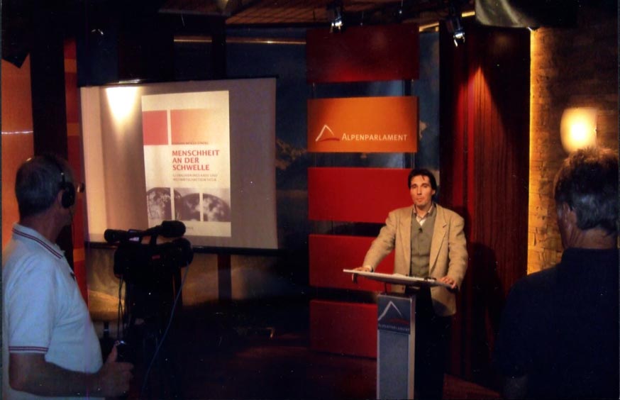| Menschheit am Scheideweg zur Welt(bürger)regierung Video-Vortrag 2004 mit Power Point Präsentation von Stephan Mögle-Stadel Die sich zunehmend globalisierende Überlebenskrise wird in den nächsten Jahren eine Art Weltnotstandsregierung hervorrufen oder zu einem selbstzerstörerischen Kampf aller gegen alle führen. Wird die Erdbevölkerung, wie eine Schafherde, in eine «Schöne Neue Welt»-Ordnung geführt werden? Wie könnte sich ein globaler Bewusstseinssprung kosmopolitisch so auswirken, dass sich ein menschheitliches Miteinander (humanity and community) durchsetzt? Am Beispiel der Weltbürgerbewegung von 1948 und des 1961 von westlichen Geheimdiensten im Auftrag eines multinationalen Konzerns ermordeten Friedensnobelpreisträgers und UNO-General-Sekretärs Dag Hammarskjöld beleuchtet der Beitrag das Bewusstseinspotential eines homo humanus integralis. Der Vortragende Stephan Mögle-Stadel ist Vorstandsmitglied der Weltbürger-Stiftung in New York. Er verweigerte 1989 seinen dt. Kriegsdienst aus ökologischen und kosmopolitischen Gründen mit einer Psychoanalyse der Herrschaftsstrukturen und absolvierte seinen Zivildienst bei den „Vereinten Nationen“ in New York. Er studierte Pädagogik, Psychologie und Geschichte (Psychohistory) und veröffentlichte zahlreiche Bücher. |  TV-Studio-Ansicht anklicken  | |