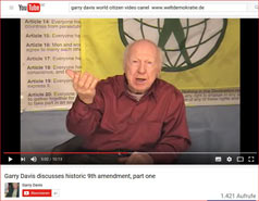 Garry Davis discusses historic 9th amendment, part one How came the United States of America into function? Can we learn something out of it for the Reform of the old UN into the United Nations of Earth in the nearby future? |