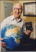 Garry Davis mit GlobusNach seiner Rückkehr aus dem Krieg folgerte Garry Davis 1947, dass die Wurzel des Krieges im Nationalstaat stecke. Inspiriert von Cord Meyers "Peace or Anarchy" and Clarence Streits "Union Now" entdeckte der ehemalige US-Bomberpilot als Alternative zum Krieg der Nationalstaaten eine Weltföderation als völkerrechtliches Mittel zum Weltfrieden. Am 25. Mai 1948 gab Davis im US-Konsulat in Paris seine Staatsbürgerschaft ab, um zu zeigen, dass "die Dominanz des Nationalstaats weder blutig bekämpft noch untertänig befolgt werden muss." Tatsächlich existiere er in Wahrheit nur in der Einbildungen jener, die ihn bekämpften oder verteidigten. "Wenn es mir gelänge, in dieser Welt wenigstens einen zeitlang ohne nationalstaatliche Anerkennung zu überleben, dann hätte ich den Ausschließlichkeitsanspruch des Nationalstaats mitten ins Herz getroffen", meinte Davis.